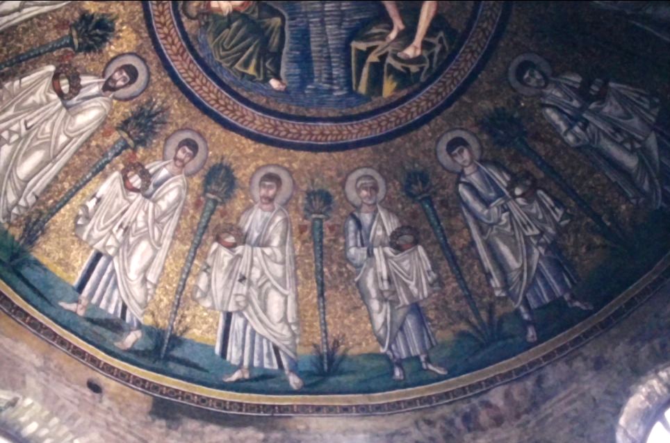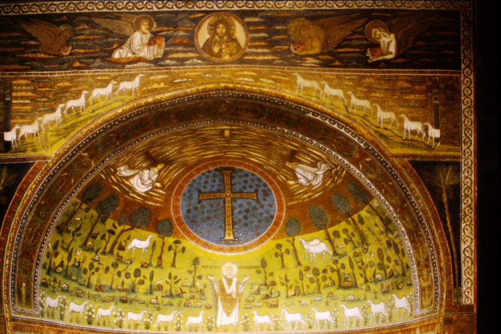 Apse mosaic, St. Apollinare in Classe, 6th c., St. Apollinarius flanked by 12 sheep