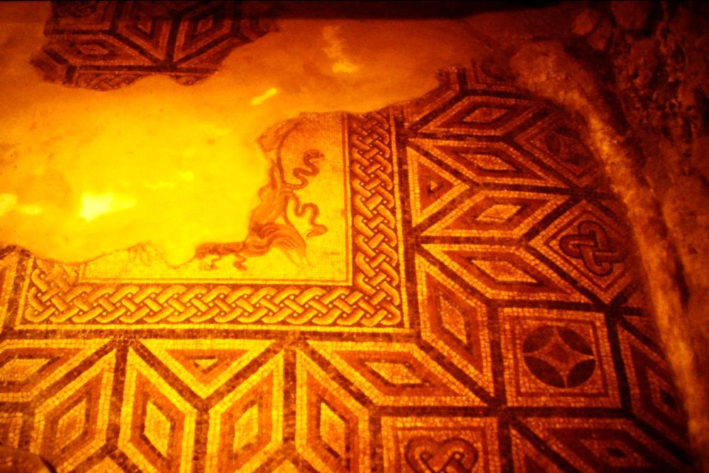 Mosaic floor in bath, Chedworth Roman Villa, England